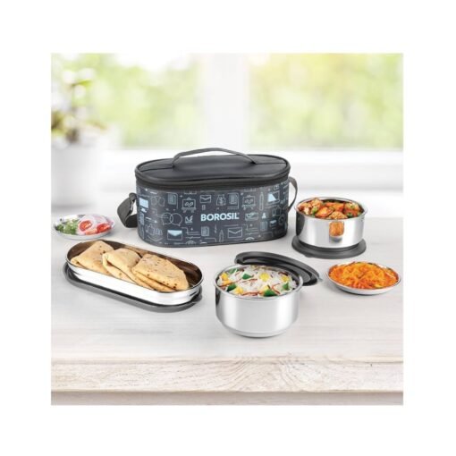 Upgrade your daily meal routine with the Borosil Carry Fresh Stainless Steel Lunchbox Set of 3, a complete meal solution designed for those on the move. Whether you’re heading to the office or school, this set ensures your meals remain warm and fresh, providing a well-rounded dining experience anywhere, anytime.