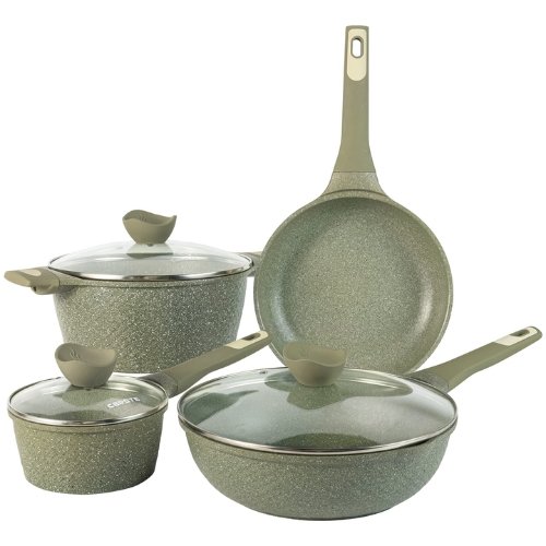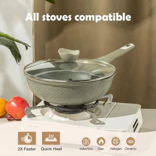 Crafted with induction-compatible materials, these pots and pans are suitable for use on all types of stovetops, including gas, electric, ceramic, and induction cooktops.