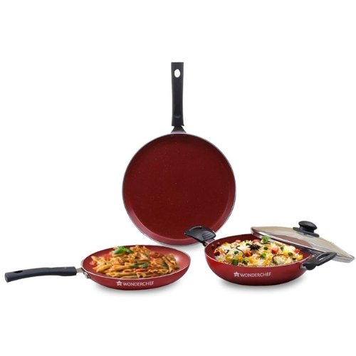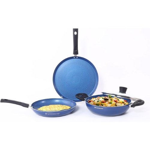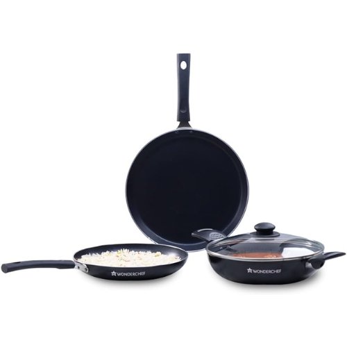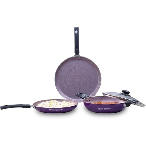 Wonderchef Valencia Non-Stick Cookware 4 Piece Set | Kadhai with Lid 24 cm, Fry Pan 24 cm, Dosa Tawa 28 cm | Pure Grade Aluminium| PFOA Free