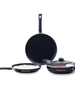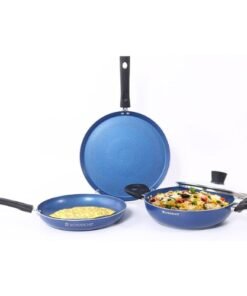 • VERSATILE 4-PIECE SET – Kadhai with Lid 24 cm, Fry Pan 24 cm, Dosa Tawa 28 cm let you cook various dishes like cutlets, curries, dosas, omelets, and more with just one cookware set.