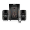 This speaker-system comes with an array of connectivity options such as Wireless BT, SD, MMC cards, and AUX. It also comes equipped with a built-in FM radio.